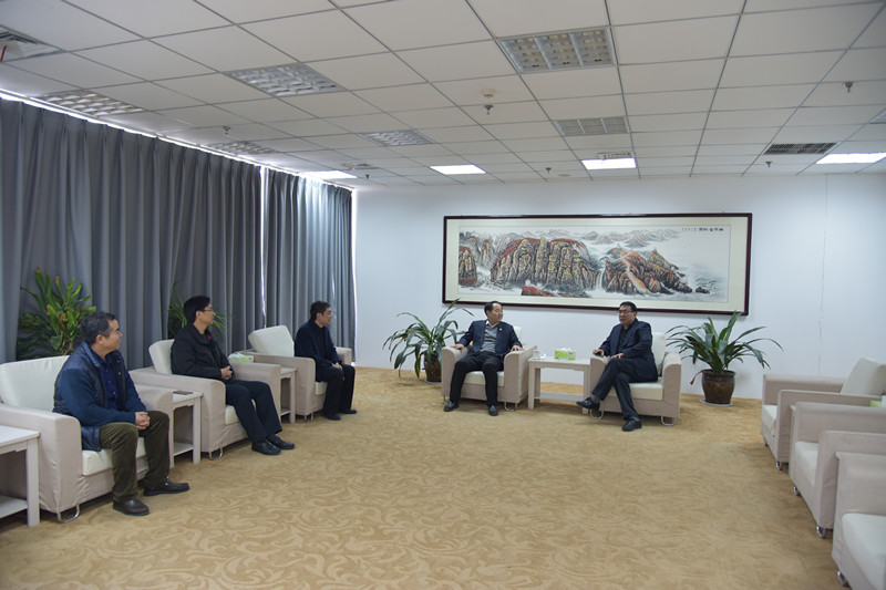 在校办公楼第二会议室,校党委书记赵学通对郅晓峰书记到来表示热烈欢迎,介绍了学校的办学特色,人才队伍建设和开展校地、校企合作的情况。郅晓峰书记同赵敬云教授亲切交谈,详细询问其科研和服务企业情况,是否有需要帮助解决的问题。