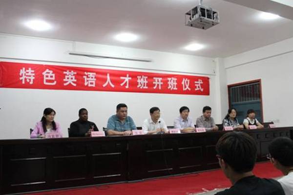 2015年5月13日下午,我校2014级特色英语人才班开班仪式在平原路校区顺利召开。副校长贾积身教授、教务处、外语系负责人、外教Ms.Stewart及人才班学生参加了开班仪式。