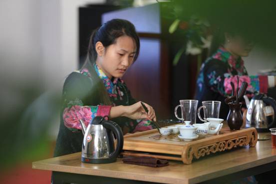 我校获得茶艺师资格证的同学在进行茶艺表演