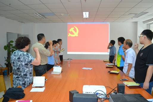在各总支书记的带领下,全体党员干部一起庄重地举起右手,面向党旗庄严宣誓,重温入党誓词。通过宣誓,全体党员干部回顾起了入党宣誓时的庄严承诺和坚定决心,受到了一次触动心灵的思想教育,进一步增强了党性意识,增强了党内凝聚力。