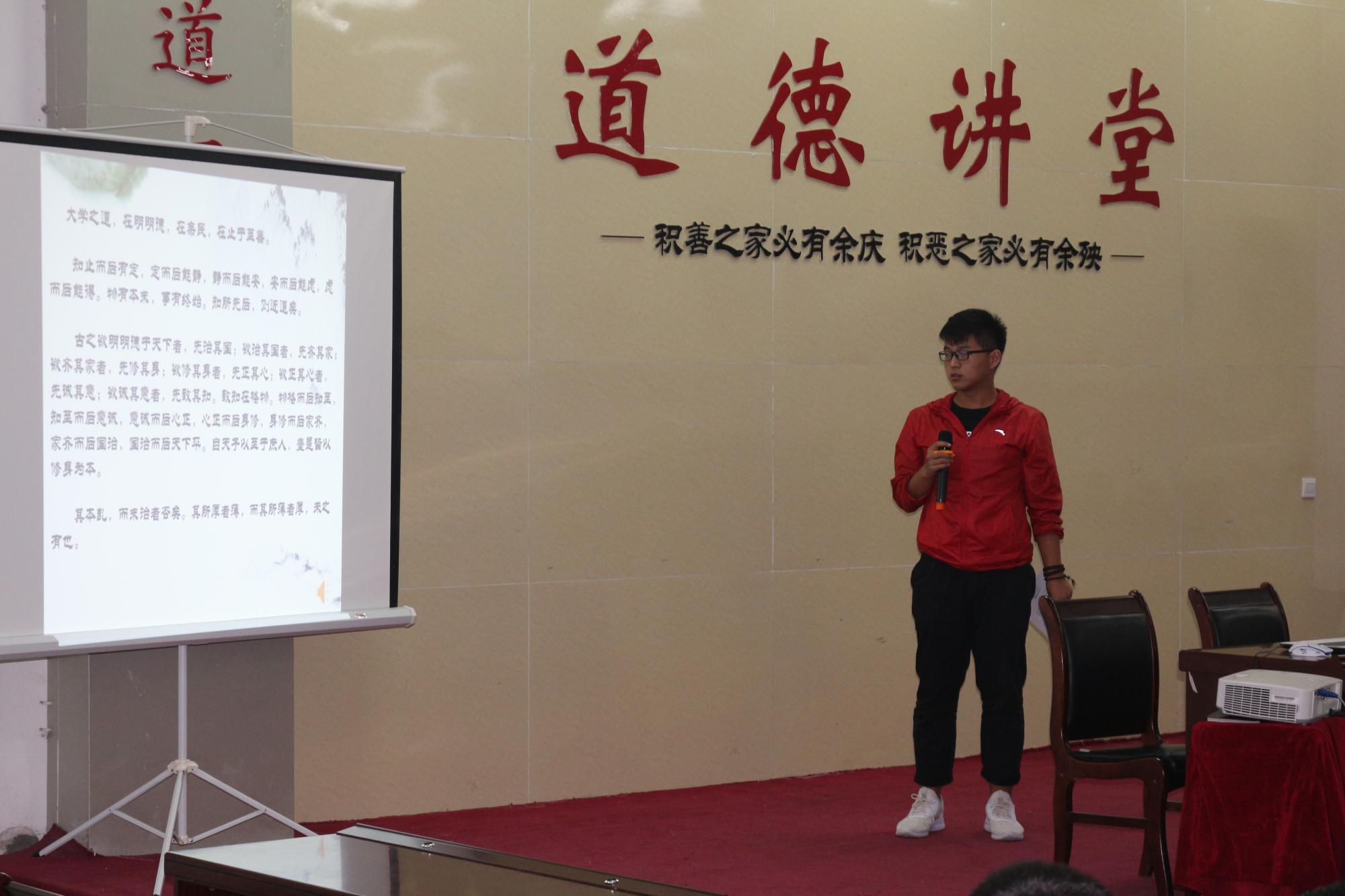 本次道德讲堂以“践行社会主义核心价值观,喜迎十九大”为主题。通过推行美德善行活动,继续以培育和践行社会主义核心价值观为主线,弘扬美德善行,大力宣传道德模范和身边好人的先进事迹,将道德理念转化为群体意识,推动知行合一的道德实践,营造崇尚道德的浓厚氛围,在潜移默化中不断增强学生文明素质与思想道德修养,同时也扩大道德讲堂的教育覆盖面和影响力。