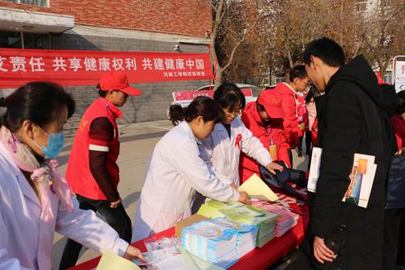 2017年12月1日是第30个“世界艾滋病日”,为进一步宣传、普及艾滋病防治知识,河南工学院校医院和青年志愿者协会共同举办了以“共担防艾责任,共享健康权利,共建健康中国”为主题的世界艾滋病日主题宣传活动,引导健康文明生活方式,增强健康意识、自律意识,共担防艾责任,将防艾宣传深入到全校。
