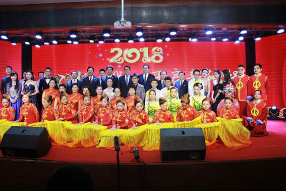 伴随着全体演职人员《歌唱祖国》深情隽永、慷慨激昂的合唱声,我校2018年教职工新年文艺晚会完美落幕。校领导上台与演职人员合影留念。