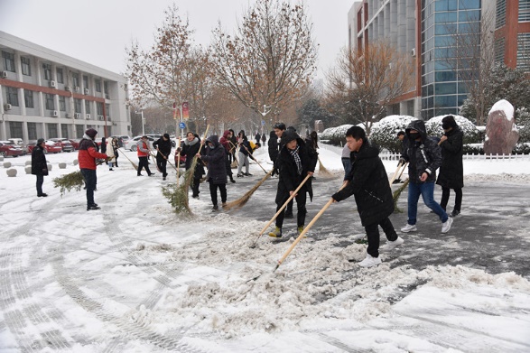 河南工学院广大师生志愿者清理积雪