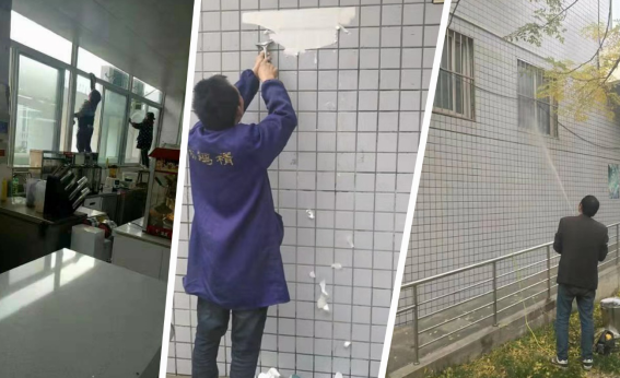三、后勤管理处按照创建动员会和推进会要求,组织教职工和餐厅商户对学生餐厅开展卫生大清扫工作,对墙面、玻璃及油烟净化设施进行彻底打扫,解决重油污问题。