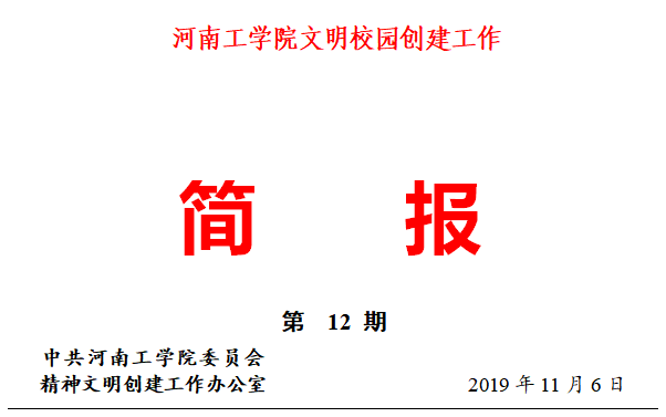 四、自10月31日召开动员会以来,机械学院分级分层开展文明讲堂,号召师生做好宿舍清理,规范停车,文明使用教室、实验室,引导师生做好垃圾分类,开展志愿服务,清理校园环境卫生。