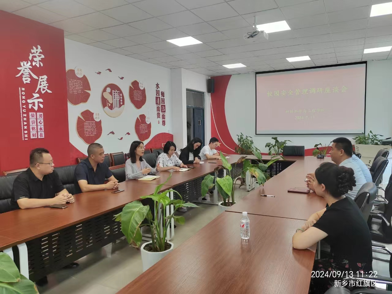 9月13日,红旗区委政法委常务副书记任玉强带队到我校调研高校校园安全和矛盾纠纷化解工作。洪门镇、红旗公安分局、区社会治理综合服务中心、红旗区法学会、区调委会相关负责同志参加调研。副校长郑先锋,保卫处、学生处、材料科学与工程学院等相关部门同志参加此次交流会。