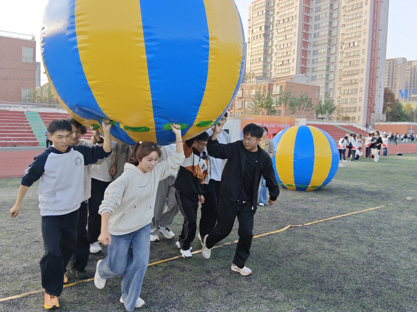 本次心理运动会设置了团体项目和个人项目两大类,旨在通过趣味运动的形式,让同学们在运动中释放活力,在协作中收获友谊。团体项目包括旱地龙舟、运转乾坤球、珠行万里等,考验团队成员之间的默契和协作能力;个人项目则由各学院承办,同学们可凭集章卡自由参与,完成项目即可获得印章,集齐一定数量的印章还可参与抽奖。此次心理运动会,既是我校落实“五网联动,五心共育”育人体系的生动实践,更是学校以特色活动为载体,将心理健康教育从课堂延伸至校园生活、从“被动应对”转向“主动赋能”的鲜活缩影。赛场上的每一次协作、每一份欢笑,都在悄然滋养着学子们自尊自信、理性平和的心理品质,也让“运动解压、团队暖心”的理念真正融入青春成长。