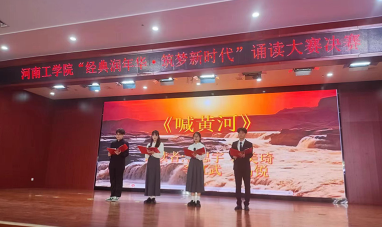 弘扬优秀传统文化提升学生人文素养推进书香校园建设在第29个“世界读书日”来临之际,4月23日我校“经典润年华·筑梦新时代”诵读大赛决赛暨河南省高校诵读大赛选拔赛在创新楼学术报告厅如约举行。本次大赛由图书馆党委统战部、党委学生工作部、校团委人文素质教育中心联合主办,材料科学与工程学院承办。