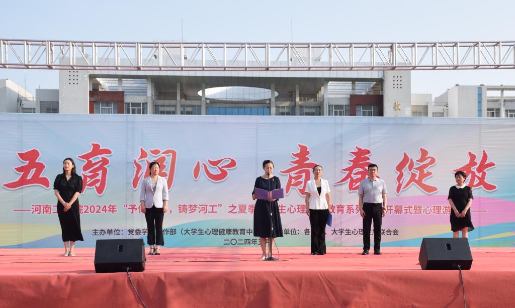 为深入贯彻落实教育部等十七部委《全面加强和改进新时代学生心理健康工作专项行动计划(2023-2025年)》文件精神,提升心理育人工作质量和学生心理健康素养。5月23日下午,我校2024年“予你四季,铸梦河工”之夏季大学生心理健康教育系列活动启动仪式暨心理游园会在人文广场举行。校党委副书记、副校长梁静,相关职能部门负责人,各学院党委副书记,全体辅导员,党委学生工作部全体人员及学生代表共计700余人参加开幕式。