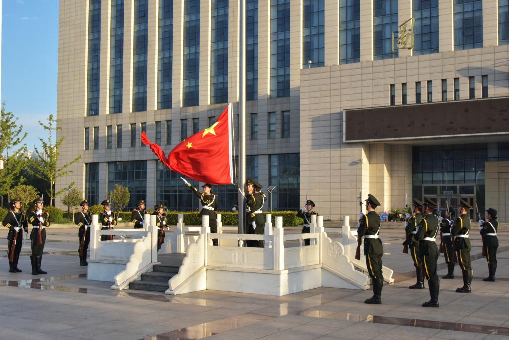 党委宣传部、党委学工部、党委保卫部、校团委负责人,各学院党组织副书记、辅导员和师生代表参加升旗仪式。