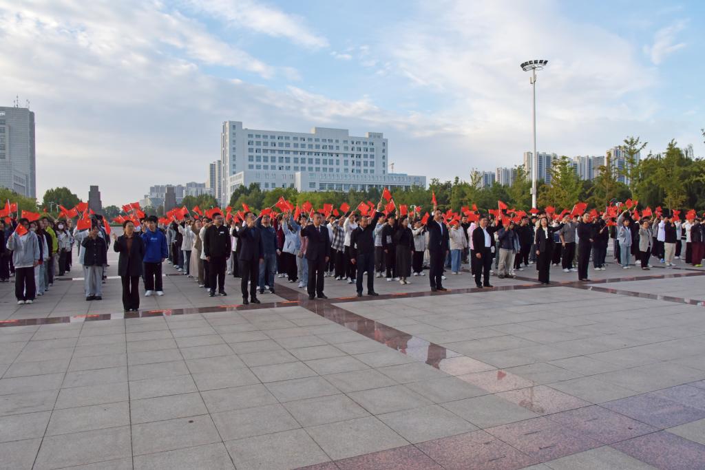 为热烈庆祝中华人民共和国成立75周年,厚植爱国情怀,弘扬民族精神,增强全体师生民族自豪感和历史使命感,10月1日上午,我校在致远广场举行国庆节升旗仪式。校党委书记、校长孙斌,纪委书记路阳参加活动。