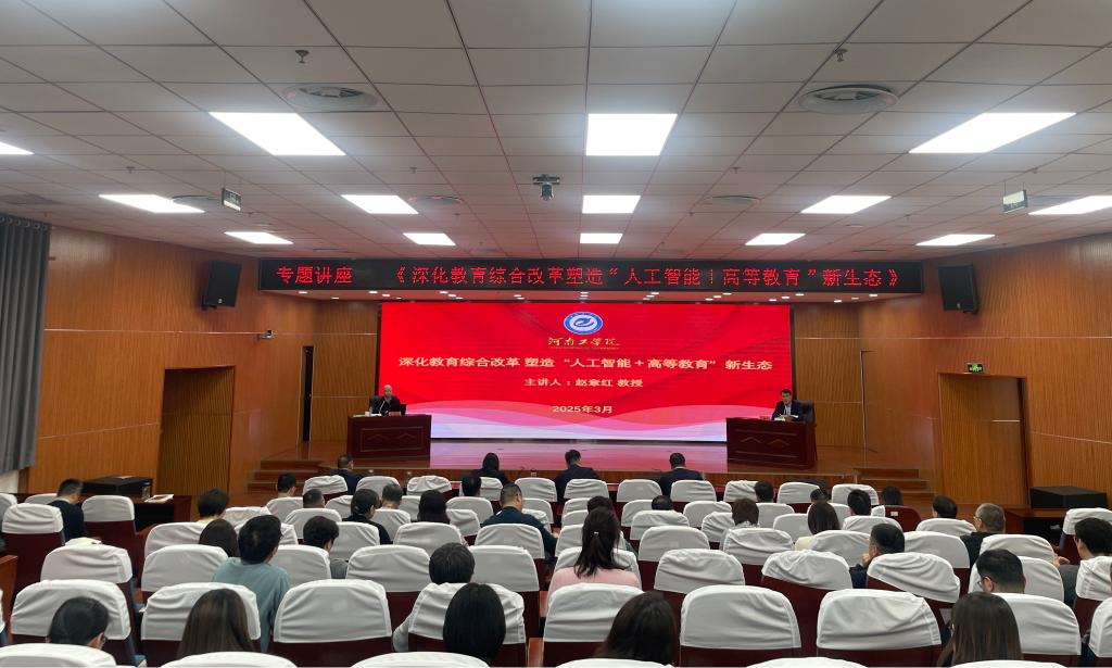 赵章红教授围绕如何构建高质量教育体系、完善高校科技创新机制、分类推进高校改革,提出塑造“人工智能+高等教育”新生态的重要举措,结合河南工学院发展现状,从人工智能、大模型技术突破、核心逻辑、典型应用、风险挑战等方面,提出了优化我校专业布局、创新人才培养模式、推动科研创新、加快成果转化的建议。此次报告对我校深化教育综合改革、推进教育科技人才体制机制创新发展具有重要的指导意义。