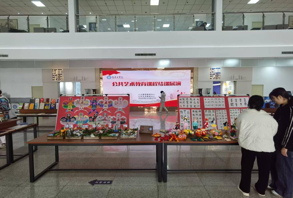 在图书馆一楼中厅举办的“书画艺术类课程结课作品展”则营造了一片静谧雅致的艺术空间。一幅幅笔力劲健的书法习作,一张张色彩灵动的手绘创作,一件件精巧细腻的钩针编织,以及一方方意趣盎然的微景观,无不凝聚着同学们一学期以来的潜心学习与艺术创想。