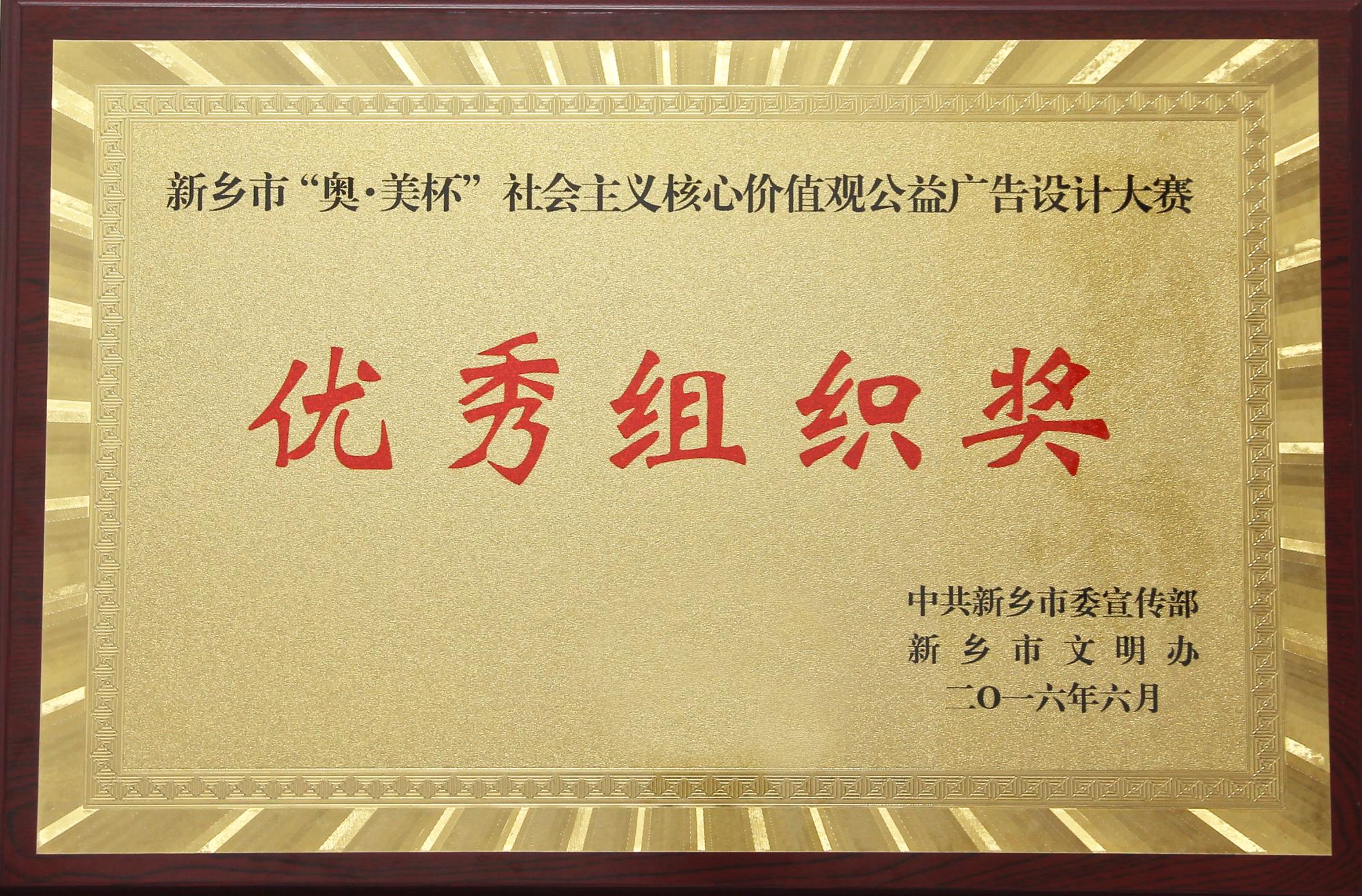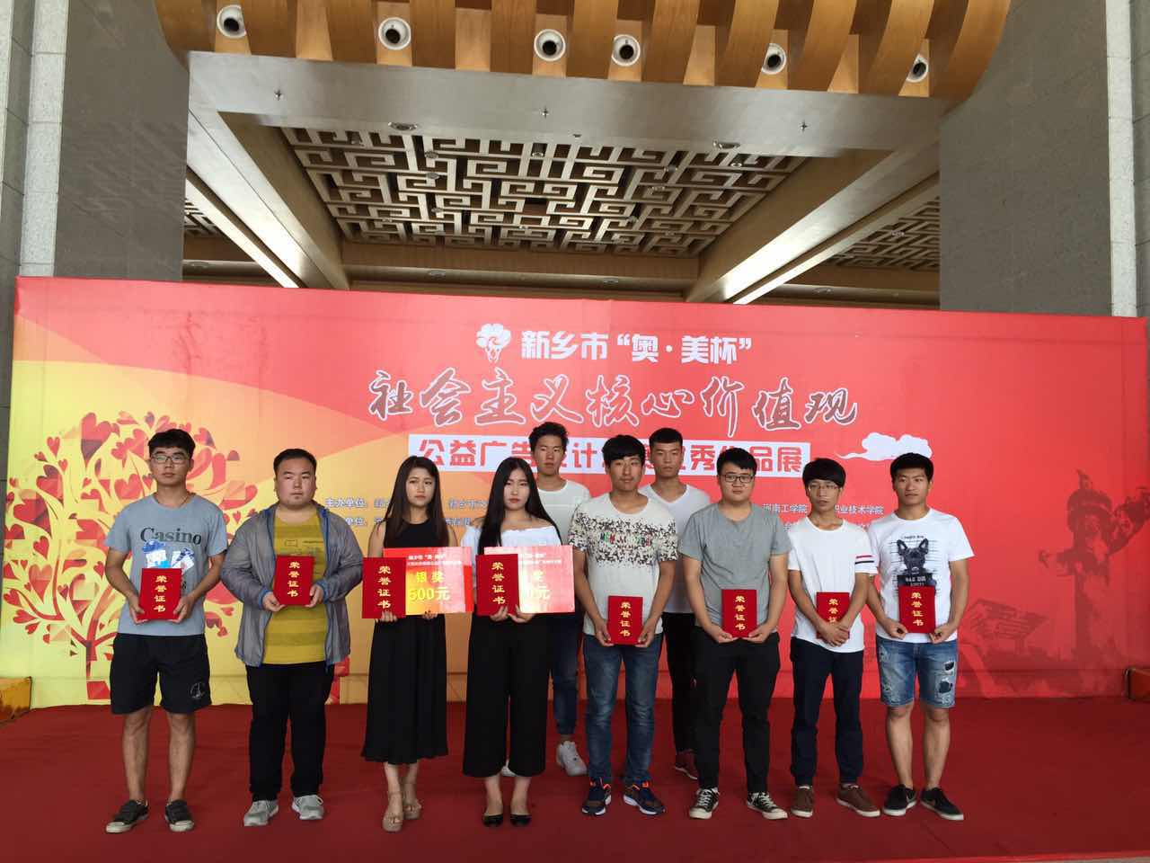 6月29日上午,新乡市“奥•美杯”社会主义核心价值观公益广告设计大赛颁奖仪式在新乡市博物院一楼大厅举行。我校参赛选手获得银奖1名,铜奖1名,优秀奖8名的好成绩,囊括了总奖项的四分之一,并荣获优秀组织奖和优秀指导奖。