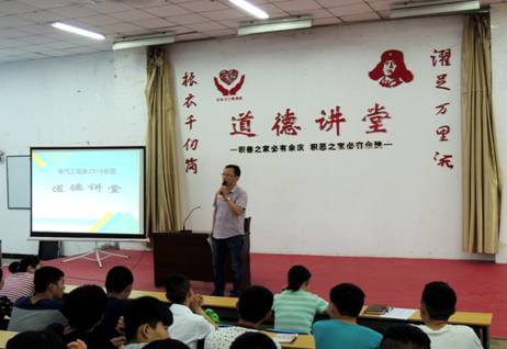 为培养学生树立远大理想、激发学习热情,让每个学生心中都充满阳光。5月24日下午,在公教楼A205电气工程系承办了校文明办安排的学校第三期道德讲堂宣讲活动。参加此次活动的有:电气工程系党总支书记侯存敏、全体党员教师及15级学生近四百人。活动由电气系辅导员肖雅文主持、主讲。本次道德讲堂的主题为“放飞梦想 扬帆起航”。