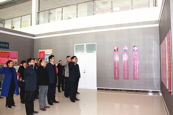 参观结束后,在校党委书记赵学通同志的带领下,全体领导班子成员和党委职能部门负责同志,面对鲜红的党旗,重温入党誓词。