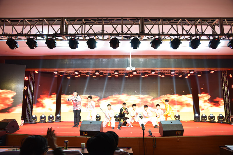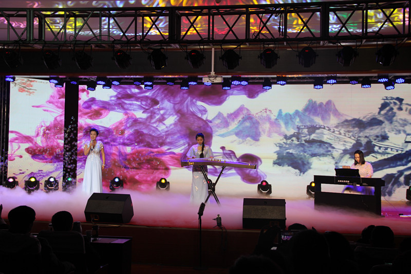 伴随着动感的节奏和欢快的舞姿,晚会在美仑美奂的扇子舞《盛世中华》中拉开了序幕。现场采用LED大屏幕展示,与精彩节目将相辉映。整场晚会形式多样、丰富多彩,包括歌曲、舞蹈、相声、戏曲、武术、朗诵、模特秀等16个节目。校领导班子倾情合唱《没有共产党就没有新中国》和《团结就是力量》,铿锵有力的歌声,唱出校领导班子带领全校师生走进新时代、走向新辉煌的豪情和信心;歌曲串烧《追忆时光》怀旧经典、回味青春,极富感染力;武术表演《龙拳》苍劲有力,一招一式尽显中华雄风;朗诵《我愿在河工陪你长大》表达了学校教师献身教育事业,为学校发展和学生成长成才奉献青春的豪迈激情;模特秀《和谐中国》以精美的旗袍和自信优雅的舞步,展现了我校女教工的古典美韵和对新时代新征程的美好向往;相声《我要做一个时尚的老师》诙谐幽默、妙语连珠,表达了我校教师与时俱进、勇于创新的精神风貌;三句半《欢欢喜喜过新年》和戏曲表演《抬花轿》,展现了我校师生丰富的人文艺术素养和高雅的文化品位;现代舞《Dance Party》、《火》节奏明快、律动十足,充分展示了青年教师活泼靓丽的青春风采;歌曲《女儿情》、《一杯美酒》、《梦的地图》、《今夜无眠》旋律美妙、婉转动听,或高昂激越或清丽明媚或异域风情,推动晚会气氛一次次走向高潮。