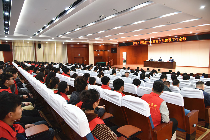 党委书记赵学通作题为《提高认识 丰富载体 推动我校精神文明建设再上新台阶》的讲话。赵书记回顾总结了我校2017年精神文明建设工作。2017年我校认真贯彻落实党的十九大关于精神文明建设的战略部署,在“开拓进取,自强不息”的学校精神鼓励下,以合力争创全国文明单位、全国文明校园为契机,多措并举,积极为新乡市创建全国文明城市做贡献,校园文化建设取得显著成效,师生文明素养得到全面提升。