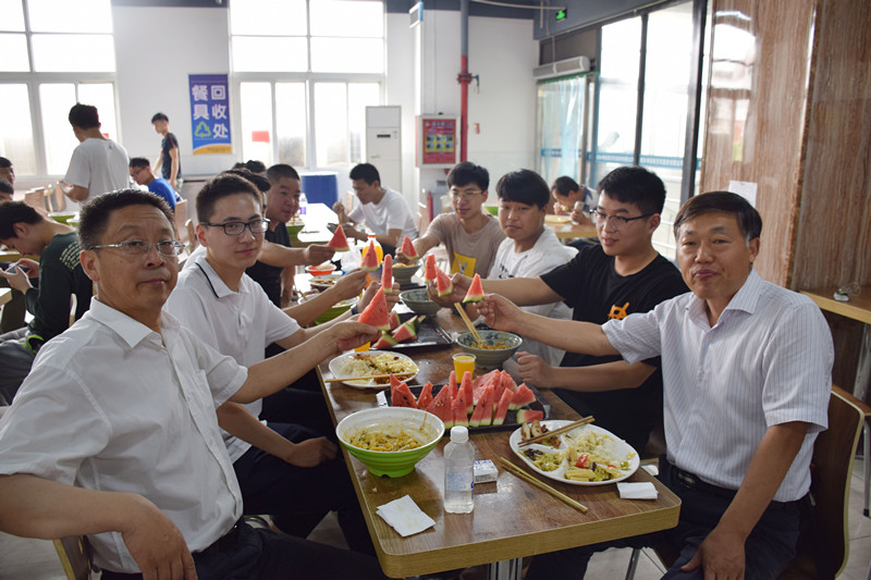 在餐厅,校领导仔细察看了餐厅的用餐准备情况,叮嘱餐厅工作人员做好服务工作,让毕业生们临行前再次感受到学校的关爱。院党委书记赵学通在静苑餐厅与机械工程系毕业生共进午餐,并与同学们亲密交谈。他仔细询问了同学们的就业、离校准备和家庭情况,叮嘱大家踏上人生的新征程后,要牢记“厚德、精技、求实、创新”的校训,不忘初心,奋勇拼搏,勇立新时代潮头,成就出彩人生,为母校争光。也希望大家无论身在何处,都能心系母校、关注母校、支持母校、宣传母校,母校也是大家人生旅途中坚强的后盾和温暖的家,欢迎大家常回家看看。