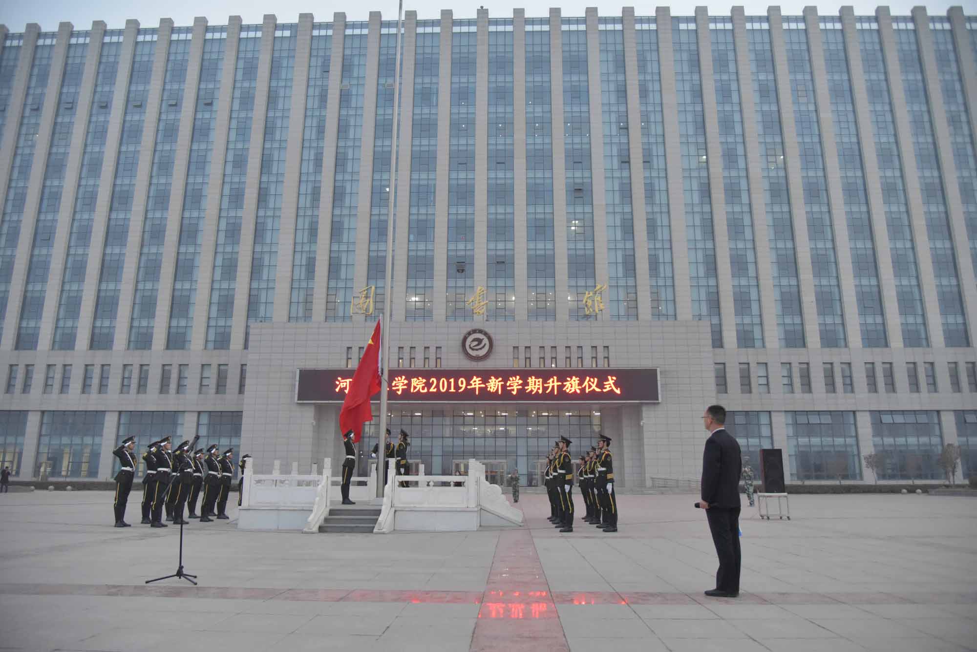 新学期,新气象,新时代,新征程。2019年2月25日上午7时,我校新学期第一次升国旗仪式在致远广场隆重举行。校领导赵学通、李贵敏、戚新波、张国臣、樊羁光出席升旗仪式,机关党委、后勤党总支全体教职工和电气工程系全体师生参加升旗仪式。仪式由电气工程系党总支负责人主持。