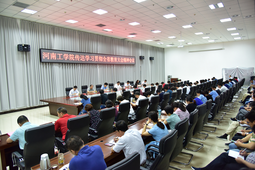 赵学通同志强调,学习贯彻习近平总书记关于教育工作的重要论述和全国全省教育大会精神,是学校当前和今后一个时期的重要政治任务,全校上下要牢牢抓住这次教育大会的历史性机遇,把贯彻大会精神与落实学校十三五规划、建设合格本科院校结合起来,确保大会精神在学校落地生根、取得实效。一要提高政治站位,把思想认识统一到大会精神上来。要自觉把思想和行动统一到习近平总书记对教育工作的重要论述上来,统一到王国生书记、陈润儿省长的讲话精神上来,统一到加快教育现代化、建设教育强省的安排部署上来,树牢“四个意识”,坚定“四个自信”,做到“两个维护”。二要坚持学做结合,把大会精神科学运用到学校实际工作中去。要通过多种形式,开展生动多样的宣传解读,把大会精神讲清楚、讲明白,让师生听得懂、能领会、可落实。要紧紧围绕合格本科院校建设目标,开展大调研活动,切实解决学校发展短板,强化内涵建设,不断提升学校核心竞争力。三要强化责任担当,确保大会精神落地生根、取得实效。全校要按照学校学习贯彻实施方案,强化责任担当,把学习贯彻大会精神与“不忘初心、牢记使命”主题教育活动、工作落实年结合起来,建立问题清单、任务清单和责任清单,明确总体要求,突出工作重点,以扎实的举措、严谨的作风,着力推动全国全省教育大会精神在学校落地生根。
