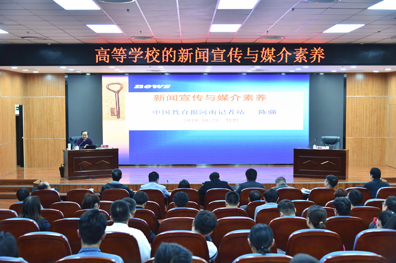 中国教育报河南记者站副站长、河南教育报刊社编审陈强教授作《高等学校的新闻宣传与媒介素养》讲座。他以丰富的新闻工作经历和非常敏锐的新闻视角,用风趣幽默、通俗易懂的语言,通过直观生动的案例,向大家讲授了新闻宣传的重要性和紧迫性,以及如何发现新闻、表现新闻,获得了在场学员的多次掌声。