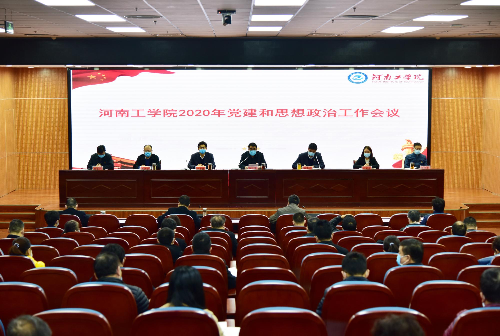 赵学通强调,新时代,学校党的建设面临许多新情况新问题新挑战。新征程,需要进一步发挥学校党的政治引导力、群众组织力、整体战斗力、反腐约束力。2020年,学校党建和思想政治工作以学习贯彻习近平新时代中国特色社会主义思想和党的十九大及历次全会精神为主题,以高质量建设为主线,以贯彻落实河南工学院首次党代会为契机,推动党的建设再上新台阶。一要坚持不懈把党的政治建设摆在首位,着力推进学习贯彻习近平新时代中国特色社会主义思想往深里走、往实里走、往心里走,用“四个意识”导航,用“四个自信“强基,用“两个维护”铸魂;二要坚持不懈加强领导班子和干部队伍建设,从严抓好干部教育管理和监督,进一步发挥党员干部在学校党的建设、事业发展和疫情防控中的先锋模范作用;三要坚持不懈聚力基层党建,全面夯实党建根基,进一步提升基层党组织的组织力;四要坚持不懈正风肃纪,推动全面从严治党向纵深发展,建设风清气正的校园政治生态;五要坚持不懈做好统战群团工作,形成工作合力,凝心聚力推动学校科学发展;六要坚持不懈落实两个责任,坚定把管党治党责任扛在肩上,推动党建和思想政治工作各项任务落地生根。