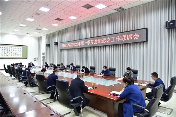 4月17日上午,我校在第五会议室召开2020年第一季度意识形态工作联席会议,意识形态工作领导小组成员及各院部党总支书记参加会议,校党委副书记李贵敏主持会议并讲话。