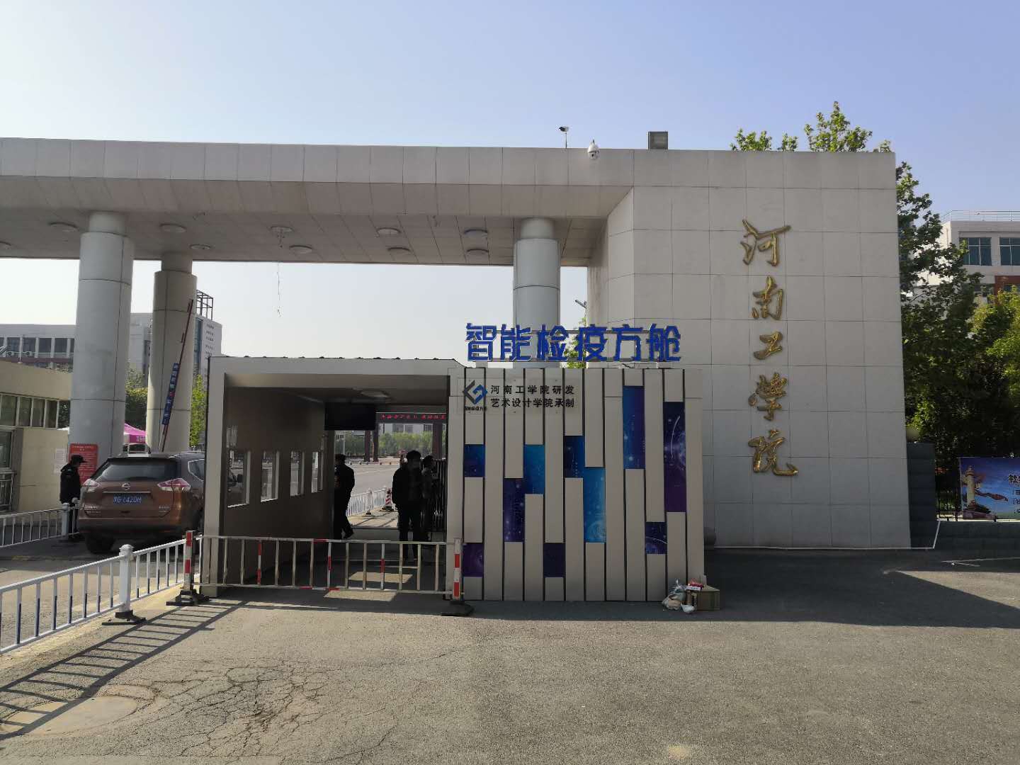 近日,我校与校企合作单位共同设计、研发、承建的智能检疫方舱在学校北门落成,为辅助学校复学把好疫情防控第一关。