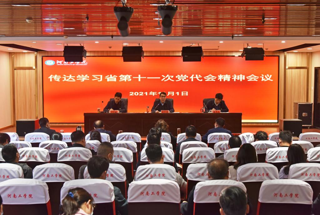 会议传达学习了省第十一次党代会上楼阳生书记所作的《高举伟大旗帜牢记领袖嘱托为确保高质量建设现代化河南 确保高水平实现现代化河南而努力奋斗》的报告,深刻领会报告中提出的高等教育事业发展新要求,动员全校上下以党代会精神为指引,加快推进省示范性应用技术类型本科高校建设,为建设国家创新高地贡献河南工学院力量。