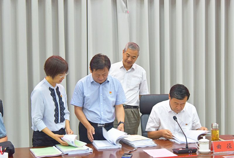 7月13日上午,省委党史学习教育第六巡回指导组莅临我校调研指导党史学习教育开展情况,汇报会在图书馆第五会议室召开。省委党史学习教育第六巡回指导组组长、省文化和旅游厅党组成员、副厅长曲径,河南中医药大学第一附属医院党委书记翟剑波,三门峡市艺术研究所副所长杨一旸出席会议。市委宣传部二级调研员陈开富,市直纪工委副书记孙予生陪同调研。全体校领导、校党史学习教育领导小组成员、各党总支书记参加会议。会议由校长陈丙义主持。