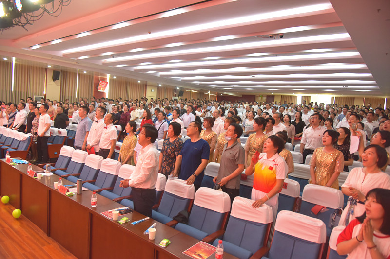 由校领导和部分党委委员组成的合唱团高唱《没有共产党就没有新中国》时,全体师生起立,随着旋律打着节拍,齐声高歌。整个会场群情激昂,歌声嘹亮,台上与台下情感共鸣,现场音乐与背景视频相互呼应,激情澎湃的歌声和热烈持久的掌声将比赛推向高潮。