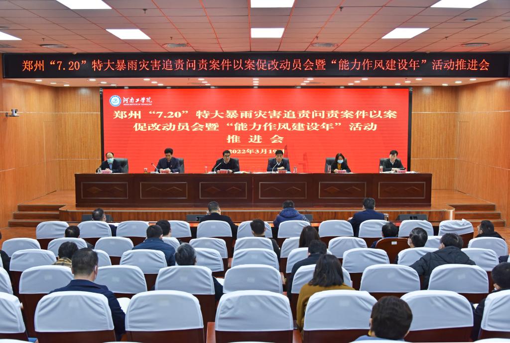 3月19日,我校在办公楼第三会议室召开郑州“7·20”特大暴雨灾害追责问责案件以案促改工作动员会暨“能力作风建设年”活动推进会。全体校领导、各部门负责人、各院部党政负责人参加了会议。校长陈丙义主持会议。