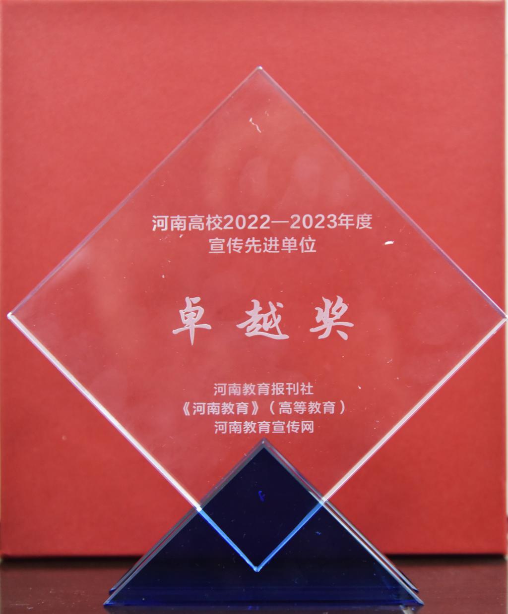近日,在《河南教育》高等教育、河南教育宣传网、河南省高等学校宣传教育服务中心联合组办的 “河南高校2022-2023年度宣传先进单位、优秀通讯员、优秀新闻作品”评选活动中,我校荣获“河南高校2022-2023年度宣传先进单位卓越奖”荣誉称号;1名同志被评为“河南高校2022-2023年度优秀通讯员”;我校新闻作品《河南工学院:做到“三好” 实现党的二十大精神走深走实》、《节日氛围别样浓!河南工学院多种形式庆祝新中国73周年华诞》分别荣获河南高校2022-2023年度优秀新闻作品二等奖、三等奖。