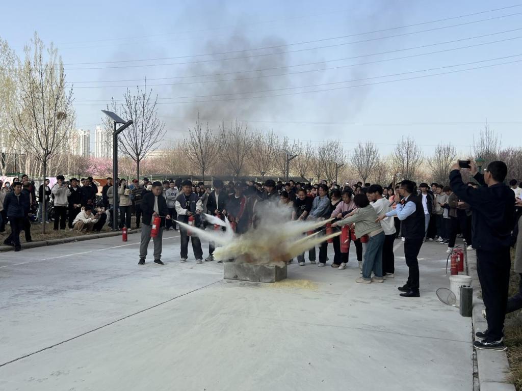 随着警报声响起,演练正式开始。参加人员按照疏散路线,用湿毛巾捂住口鼻有序从楼内的模拟火场采用正确的逃生姿势快速从安全出口撤离,整个演练过程快速有序、有条不紊,达到了预期效果。随后,杜通对本次演练过程中存在的问题进行了点评、讲解,并讲解了灭火器材的使用方法。参演人员在现场使用灭火器依次对模拟起火点进行了灭火演练,初步掌握了扑救初期火灾的能力。最后,参演代表到我校消防中控室进行了观摩、学习。