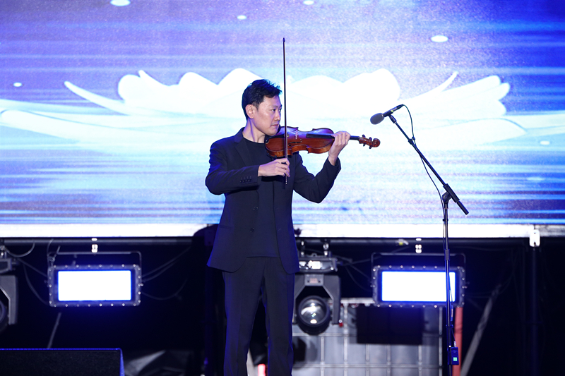 “追忆”篇章里,著名小提琴演奏家陈曦教授现场演奏的小提琴协奏曲《梁山伯与祝英台》,让东方传说的缠绵深情在弓弦间缓缓流淌;老校友代表与在校学子同台演绎歌舞剧《不如见一面》,细腻的唱腔诉说重逢的感动,当屏幕上播放出建校初期师生在简陋教室上课、在工厂车间开展实践教学的老照片时,台下不少老教师热泪盈眶,现场响起经久不息的掌声。诗朗诵《五秩风华 河工礼赞》以时间为轴,深情讲述了学校从初创时的筚路蓝缕,到如今学科建设蒸蒸日上、办学实力日益彰显的奋斗故事。