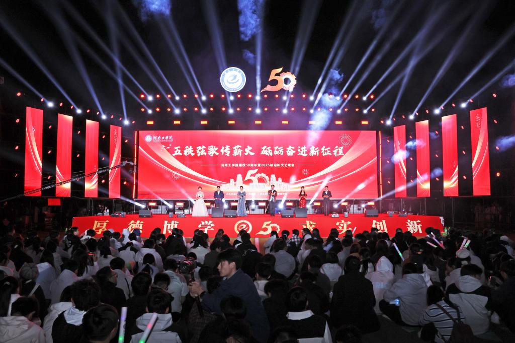 五十年砥砺耕耘,半世纪春华秋实。本次晚会不仅是一场文艺盛宴,更是学校凝聚校友力量、欢迎新生融入的重要纽带。它既是对过去五十年辉煌成就的深情礼赞,也是对美好未来的响亮宣言。本次晚会由校工会、校团委共同主办,艺术学院承办。在晚会筹备期间,校企合作董事单位、众多海内外校友、通过捐赠物资、录制祝福视频等方式助力校庆;新生们也通过参与晚会演出、志愿者服务等活动,感受到了“河工人”的归属感与凝聚力。新的征程已经开启,河南工学院必将承载着五十年的荣耀与梦想,凝聚起全体师生和校友的磅礴力量,在建设机电特色鲜明的高水平应用型大学道路上奋勇前进,续写更加辉煌的教育篇章。